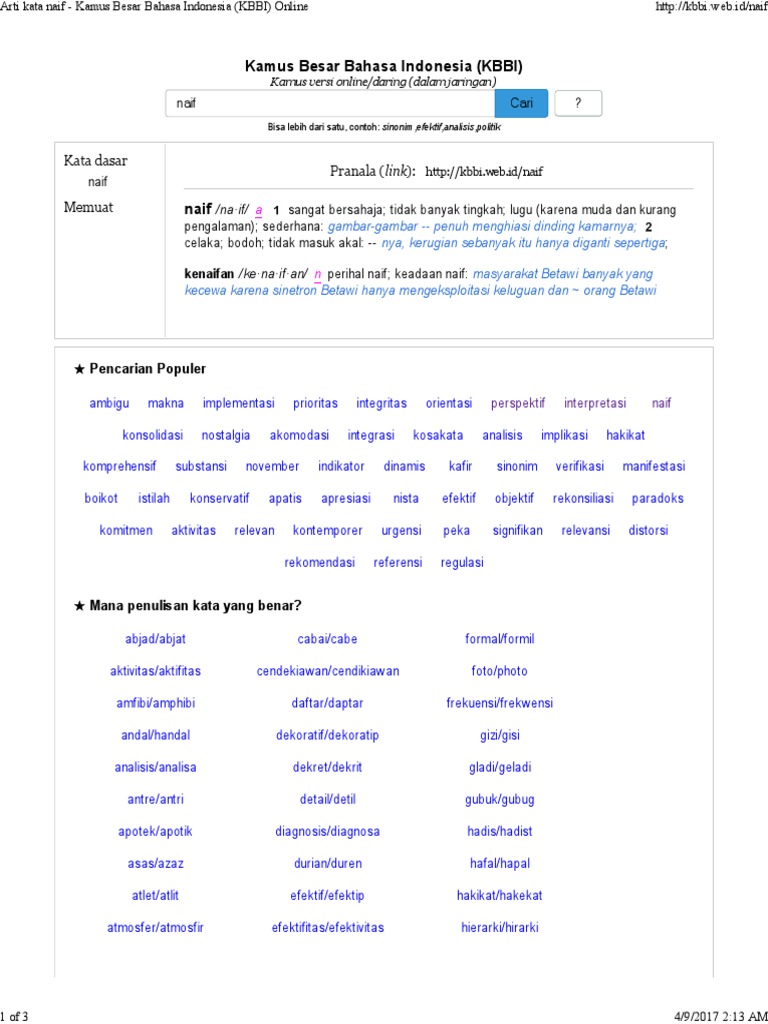 Arti Kata Naif Kamus Besar Bahasa Indonesia Kbbi Online Gfhy Pdf